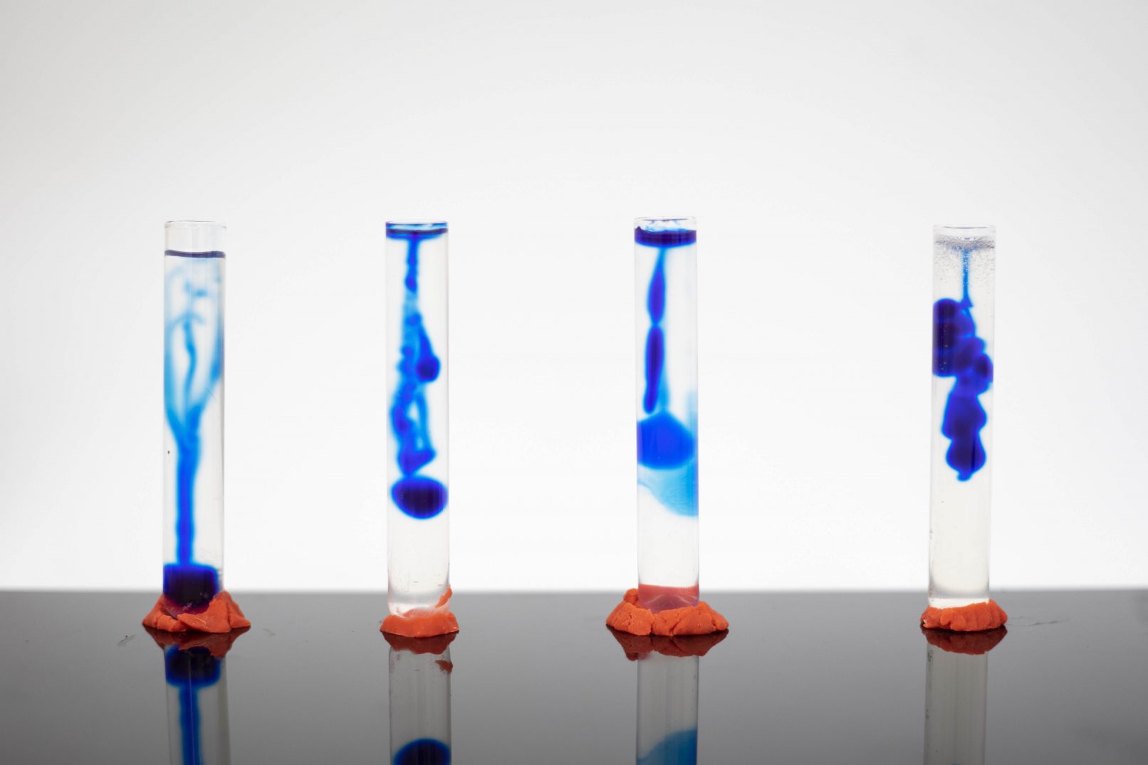 Ein Teil meiner Forschung wird stetig durch die experimentelle Arbeit mit Materialien und die teilnehmende Beobachtung des Materialverhaltens erweitert. Die Medien Fotografie und Film dienen hierbei nicht nur der Dokumentation, sondern werden zum Beobachtungswerkzeug. Untersucht werden hauptsächlich Materialien, die für die Architektur- wie auch die Designdisziplin ungewöhnlich sind. Dampfartige, flüssige bis viskose Materialien weckt hierbei mein besonderes Interesse, da ihr Verhalten oftmals unvorhersehbarer ist.